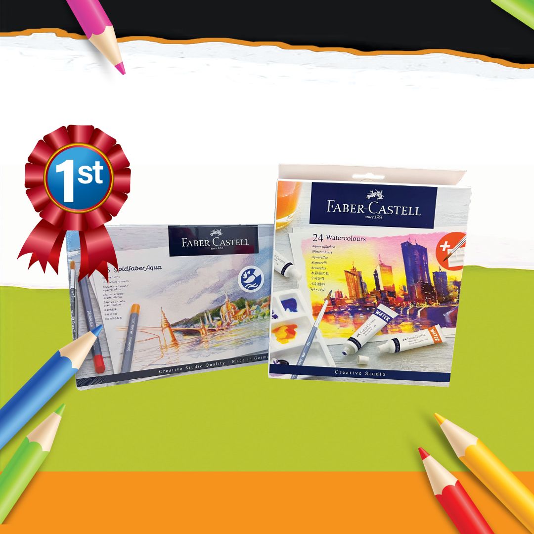 Faber-Castell Creative Studio Watercolours (set of 24) Faber-Castell Goldfaber Aqua Colour Pencils (set of 36) Prizes worth S$130 |